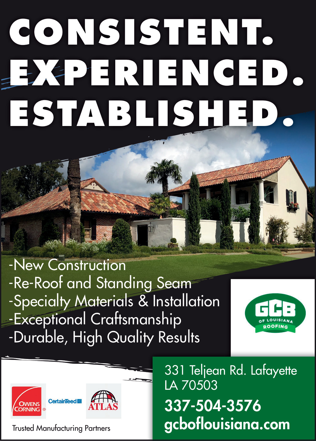 GCB of Louisiana has reliably provided specialty roofing in Louisiana since 2001. Our reputation for outstanding customer service stems directly from our extensive experience working with our customers to bring their ideas to life. You might find another company in Acadiana that sells, installs and provides customer service for your specialty roofing needs, but you won’t find one that has been more consistent.