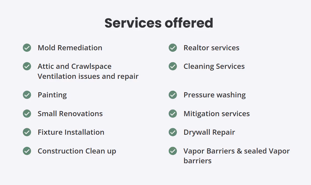 Witts End is a reputable remediation and handyman service provider serving Kalispell and the surrounding areas, committed to delivering exceptional home repair and maintenance solutions. We take pride in being a one-stop shop for all your home repair needs. Our realtor services are designed to facilitate a smooth buying and selling process, allowing us to efficiently manage most items on your buy/sell punch list. By having one contractor address multiple tasks, we can significantly reduce costs. With a steadfast commitment to quality and customer satisfaction, Witts End is dedicated to meeting your needs. Additionally, we are IICRC certified in Applied Microbial Remediation, Fire & Smoke Restoration, Water Damage Restoration, and Carpet Cleaning.